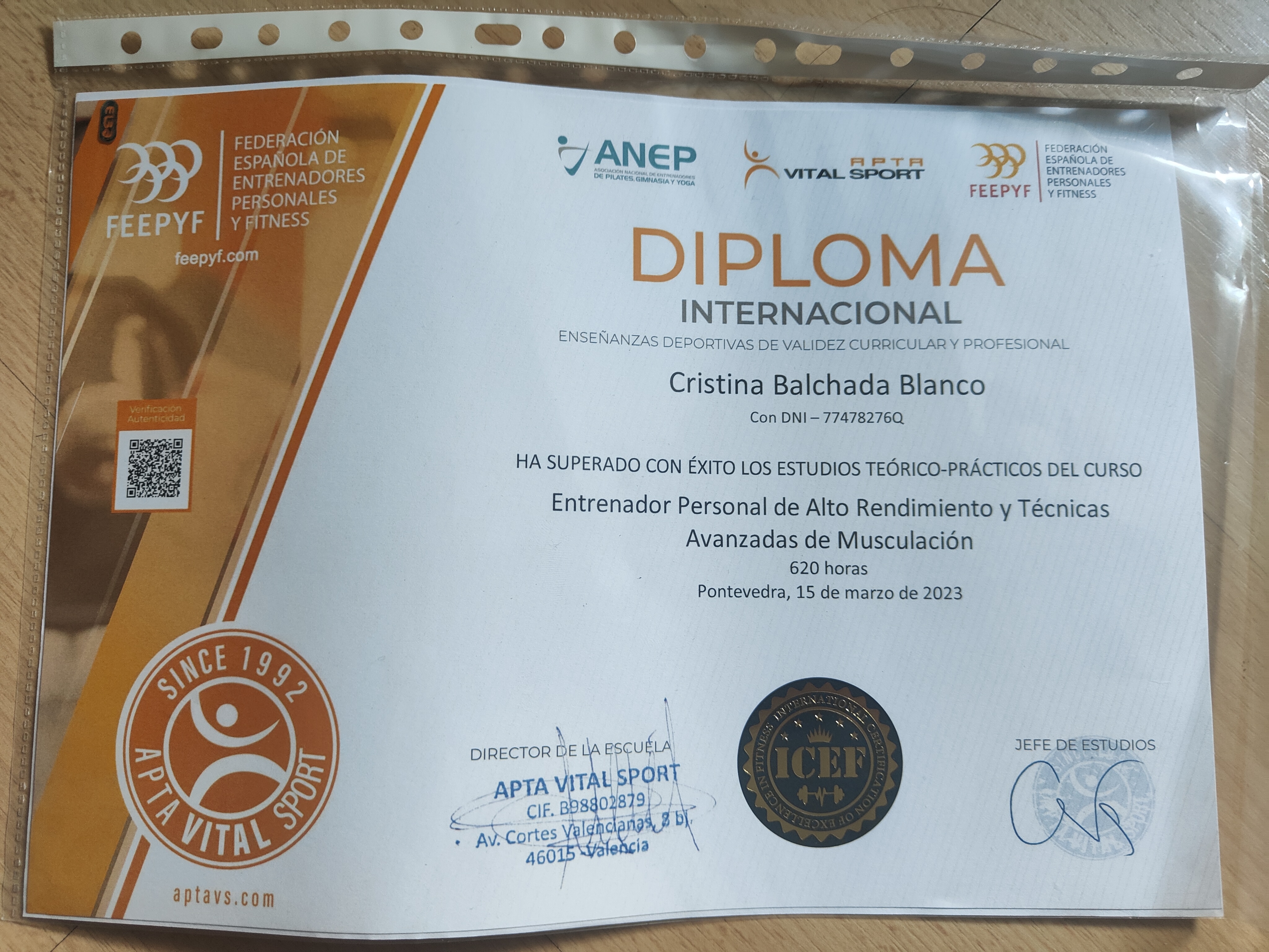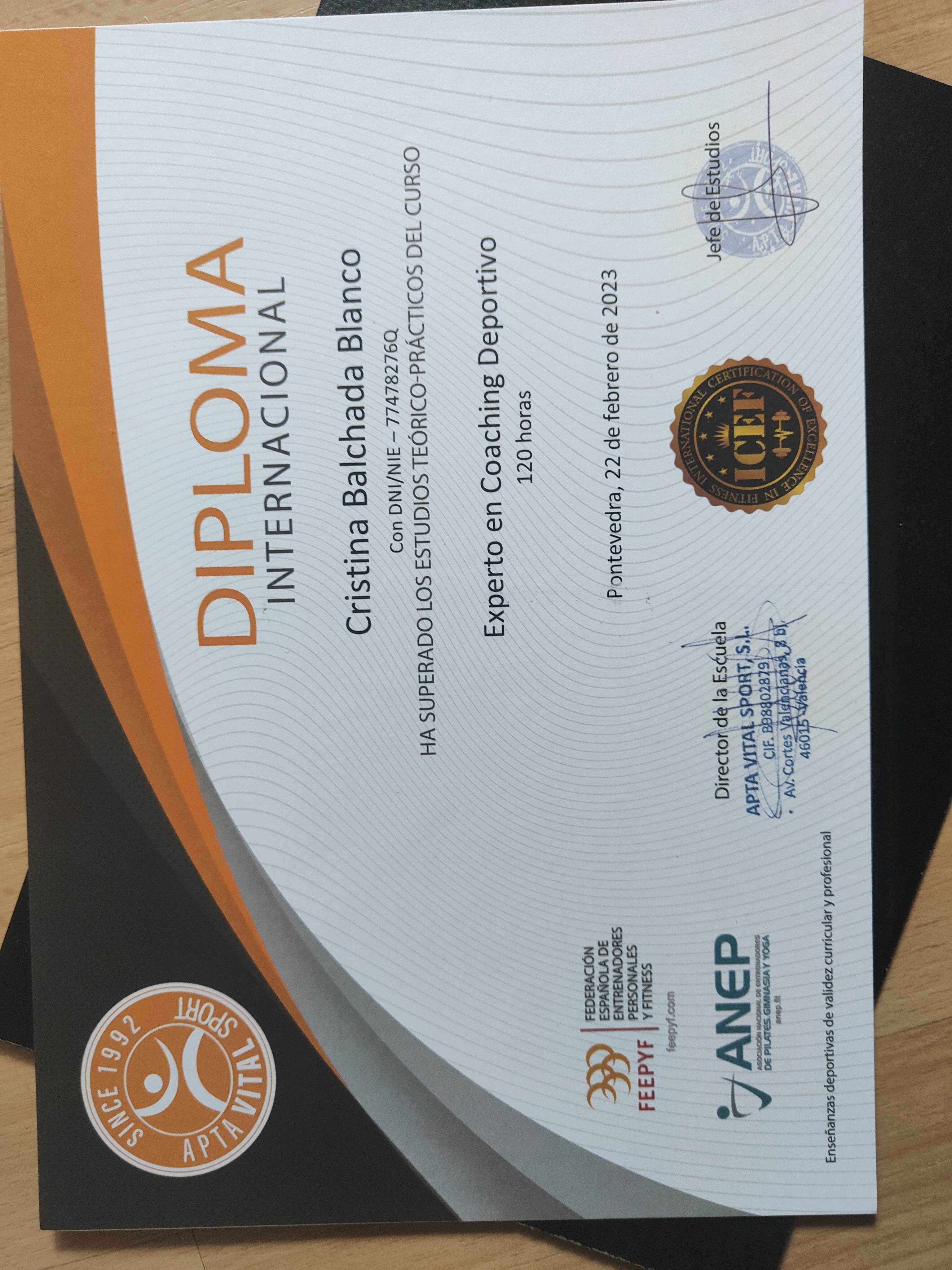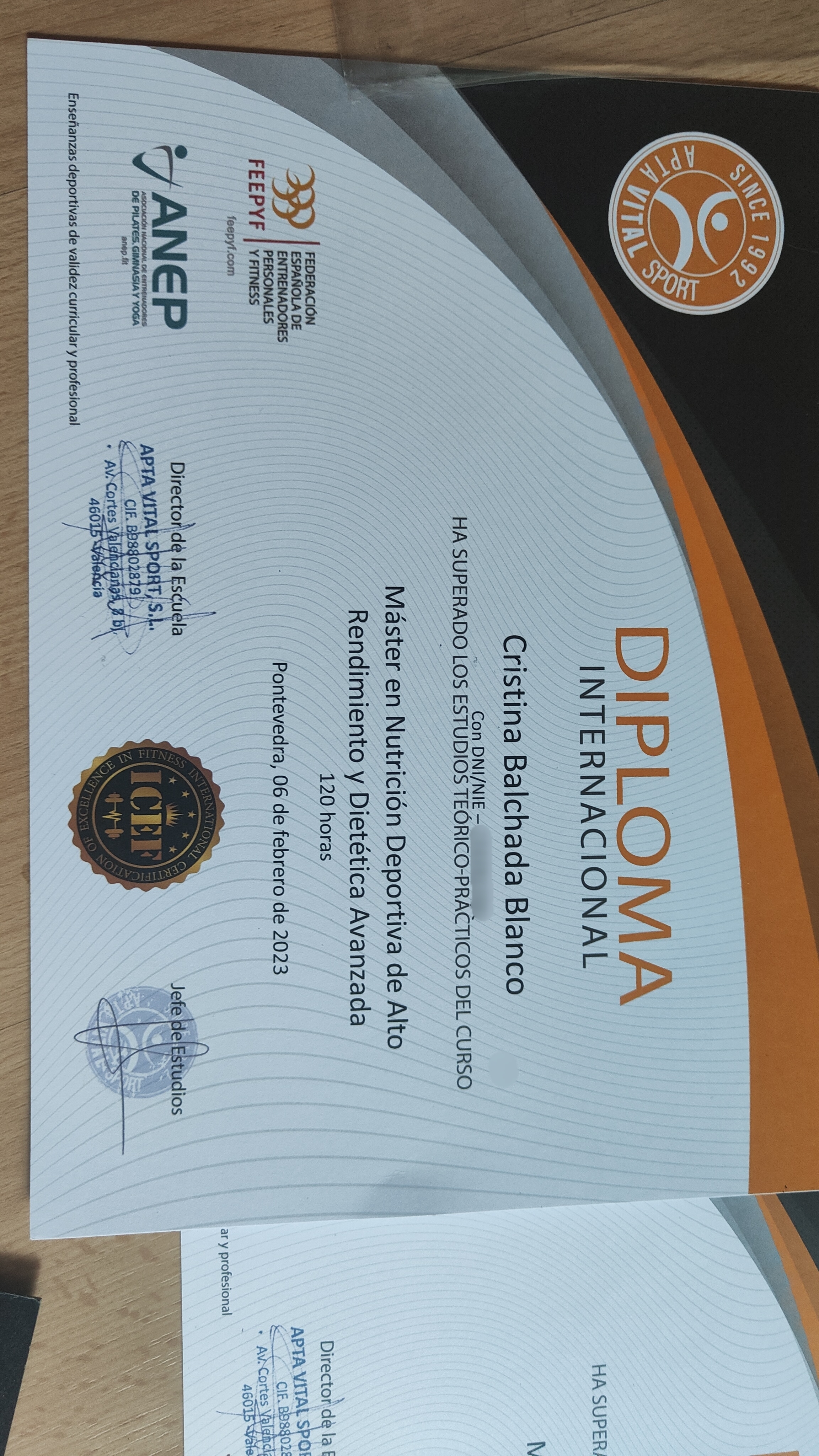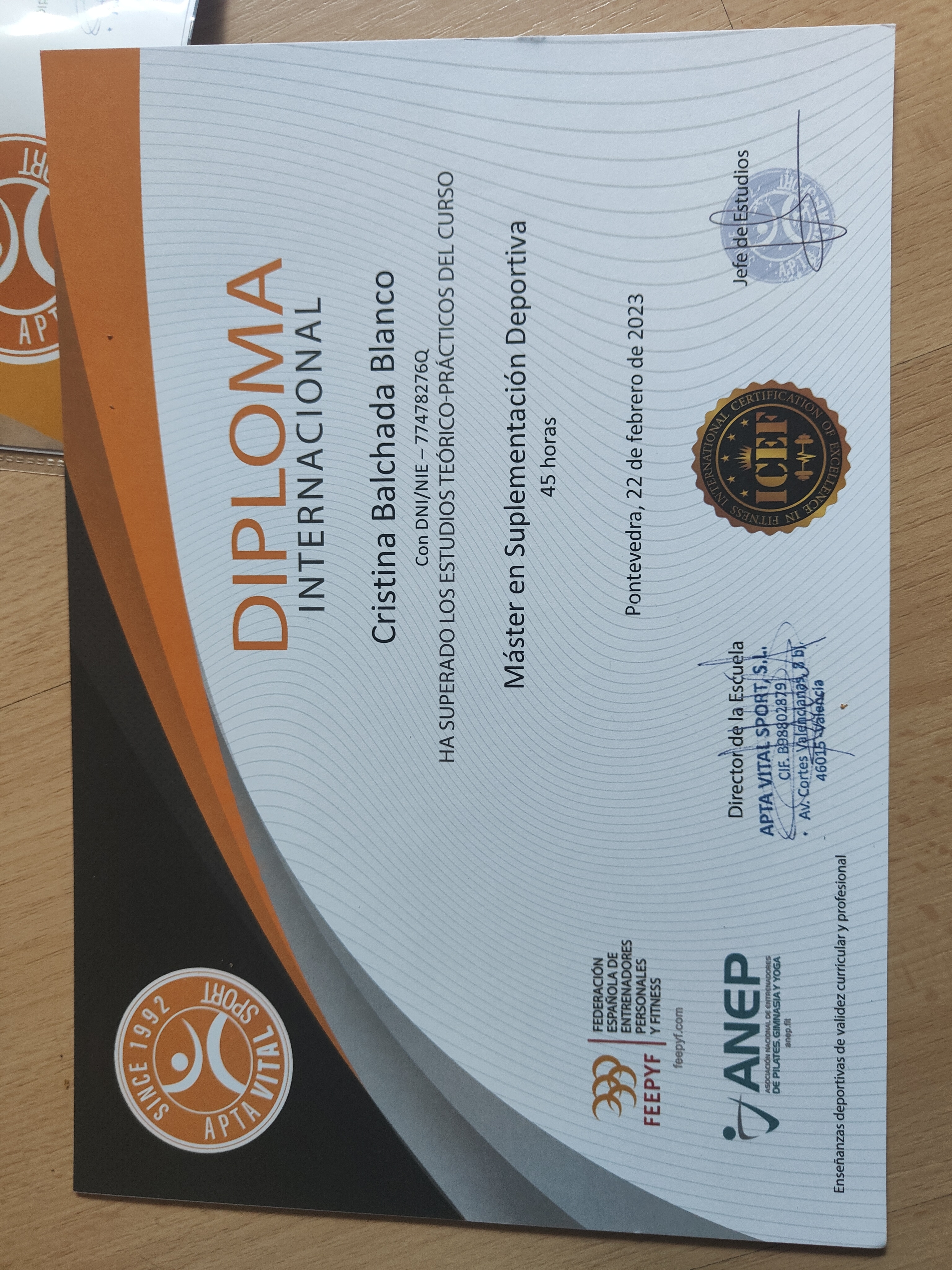 Apta Vital Sport VER CERTIFICADO