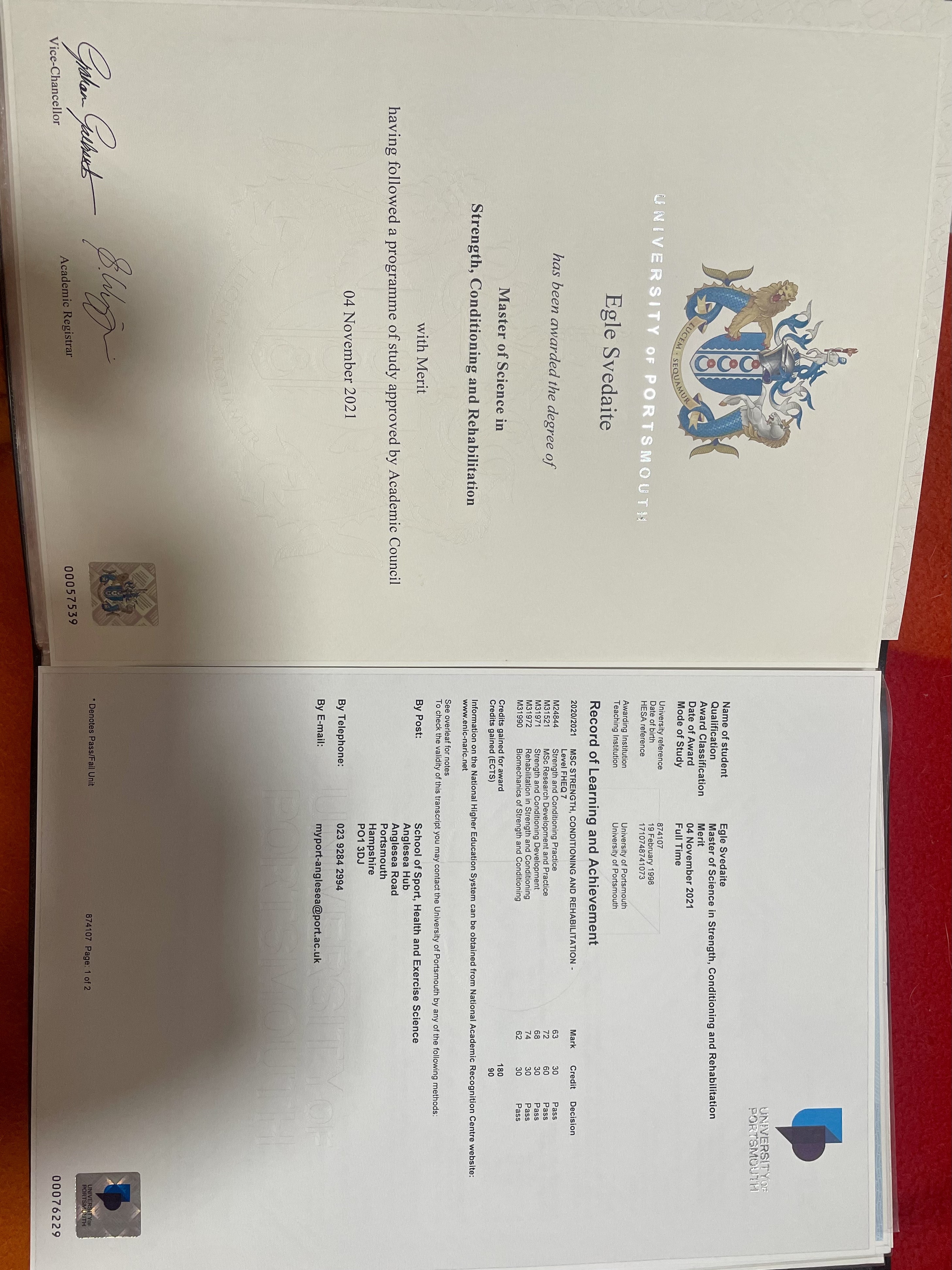 University of Portsmouth VER CERTIFICADO