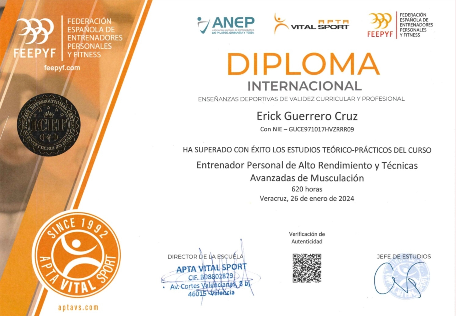 Apta Vital Sport VER CERTIFICADO