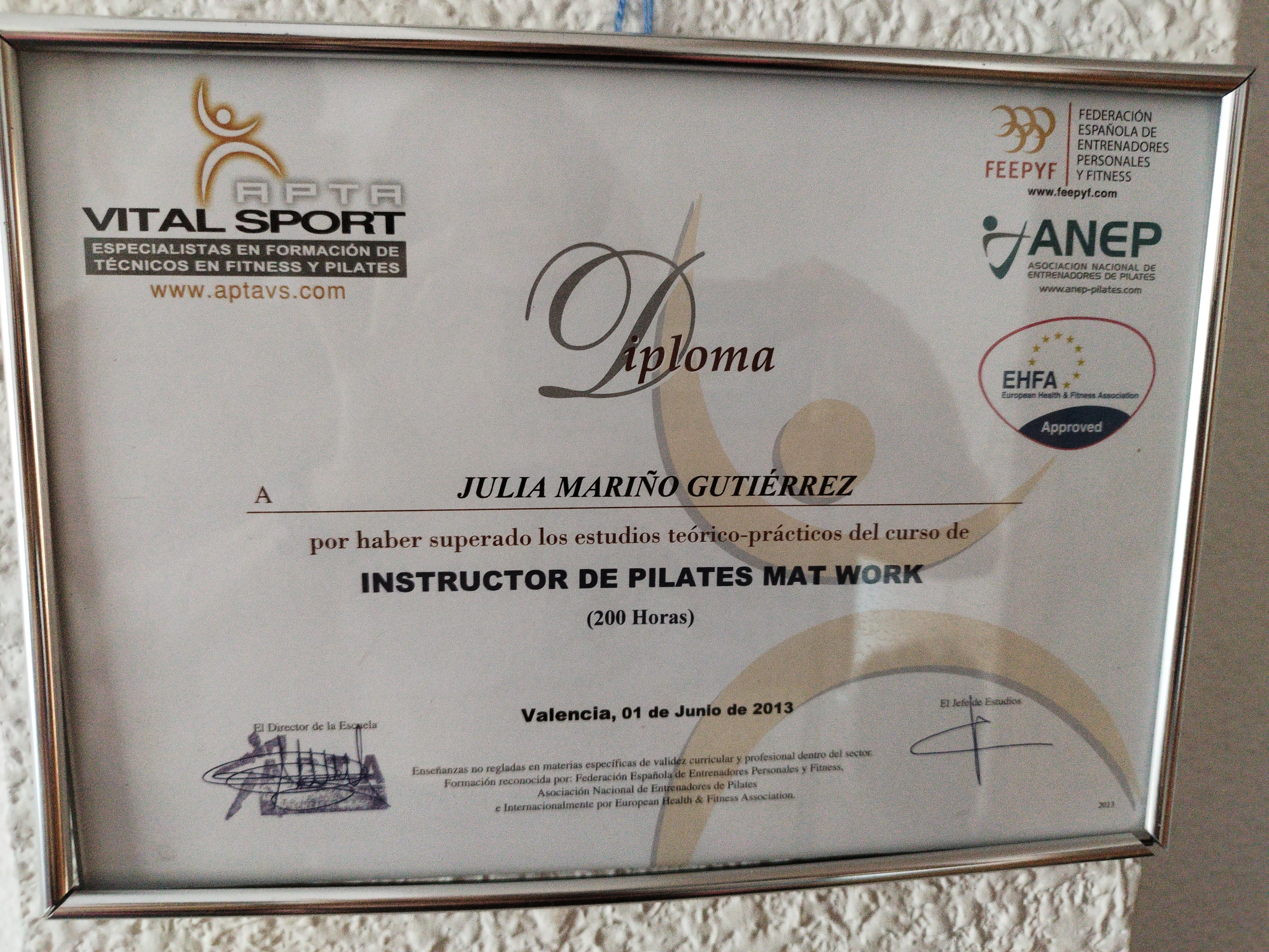 Apta vital sport VER CERTIFICADO