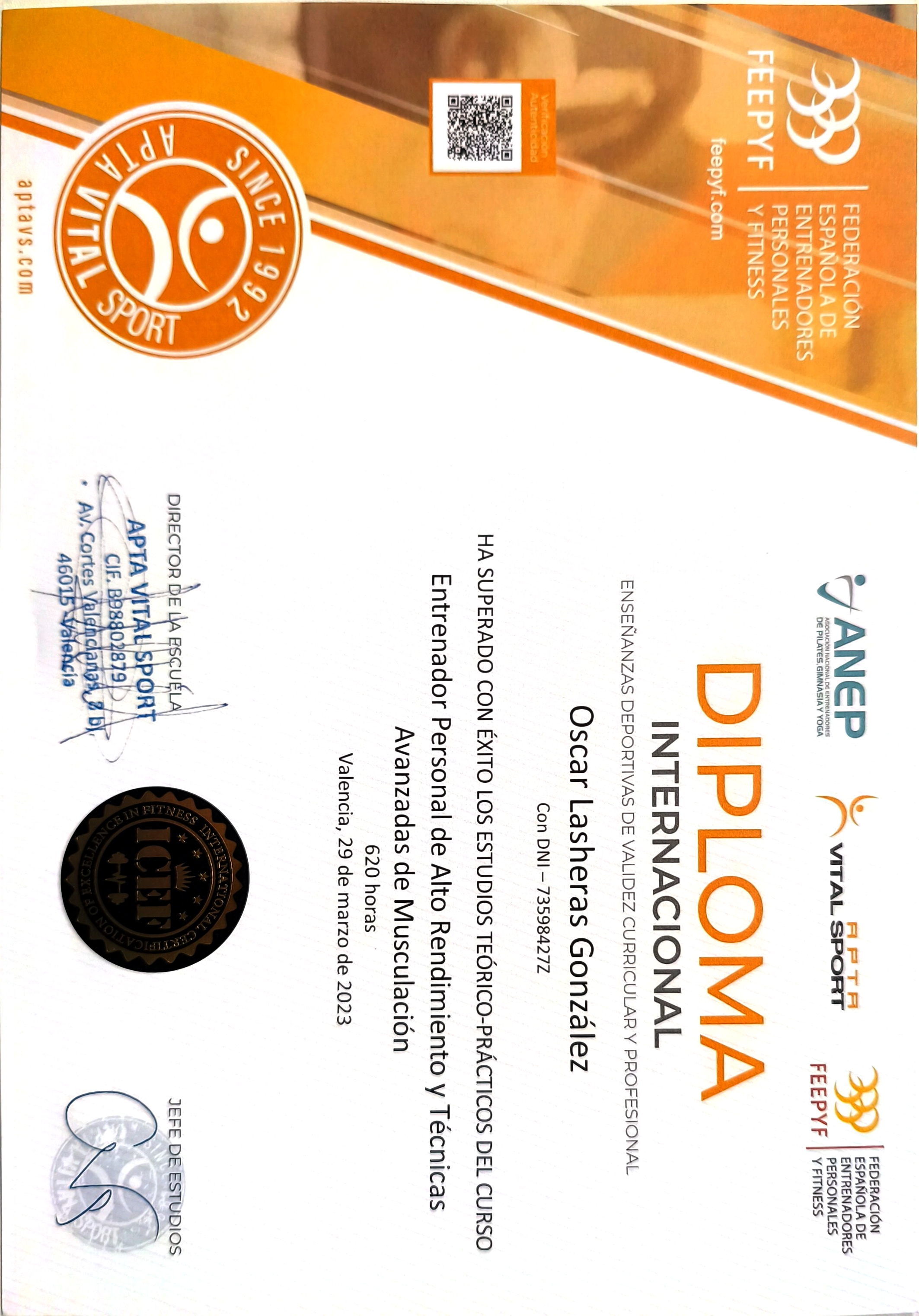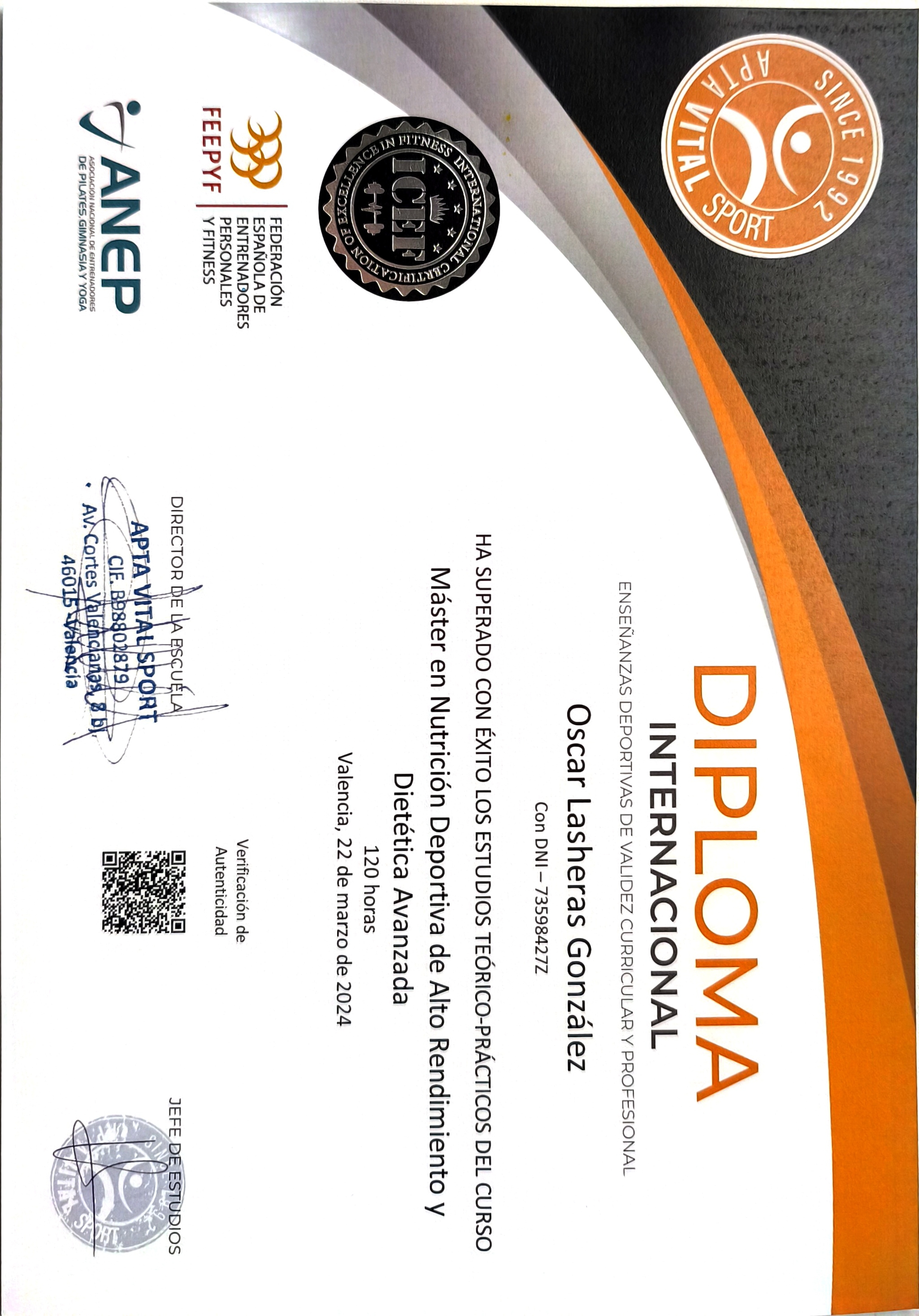 Apta Vital Sport VER CERTIFICADO