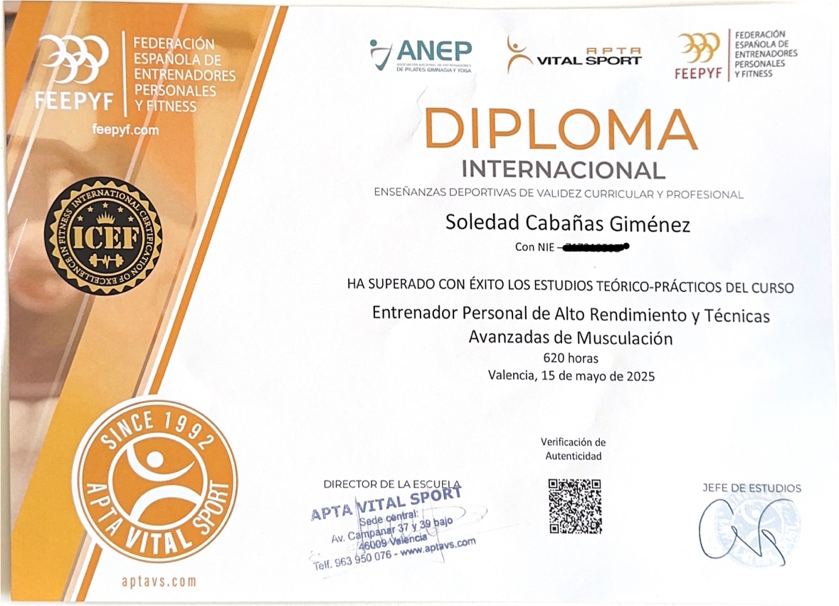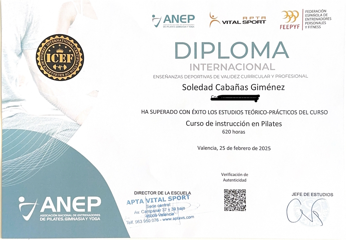 Entrenador personal de alto rendimiento y técnica avanzada de musculación/Instructora de pilates mat & reformer certificada y formada en APTA VITAL SPORT.